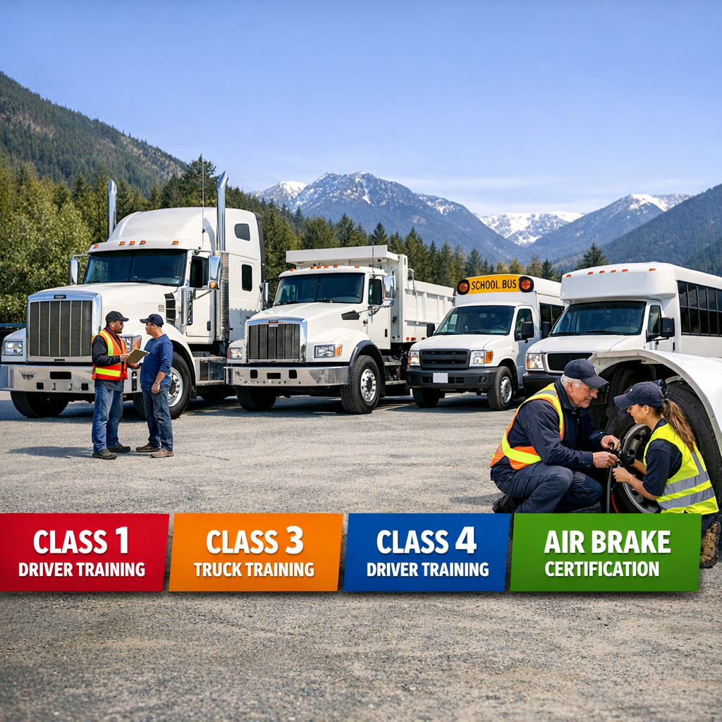 ICBC-approved commercial truck training including Class 1, Class 3, Class 4, and Air Brake certification.